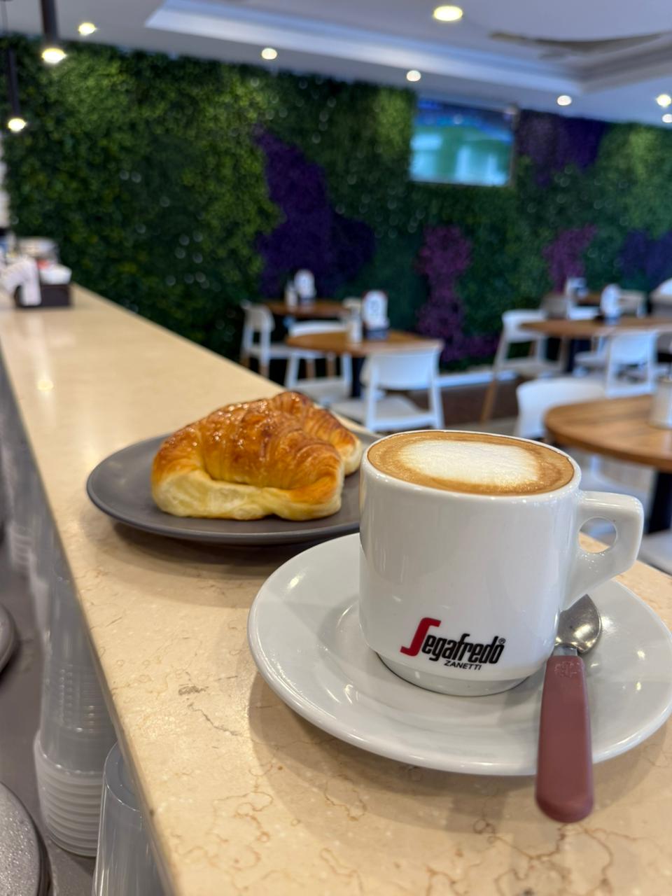 1 Café con leche + 2 Medialunas de Jamón y Queso